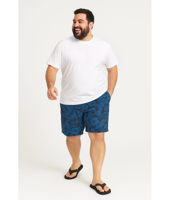 Short Estampado Elastano Plus Size Grande Bermuda praia Preto azul